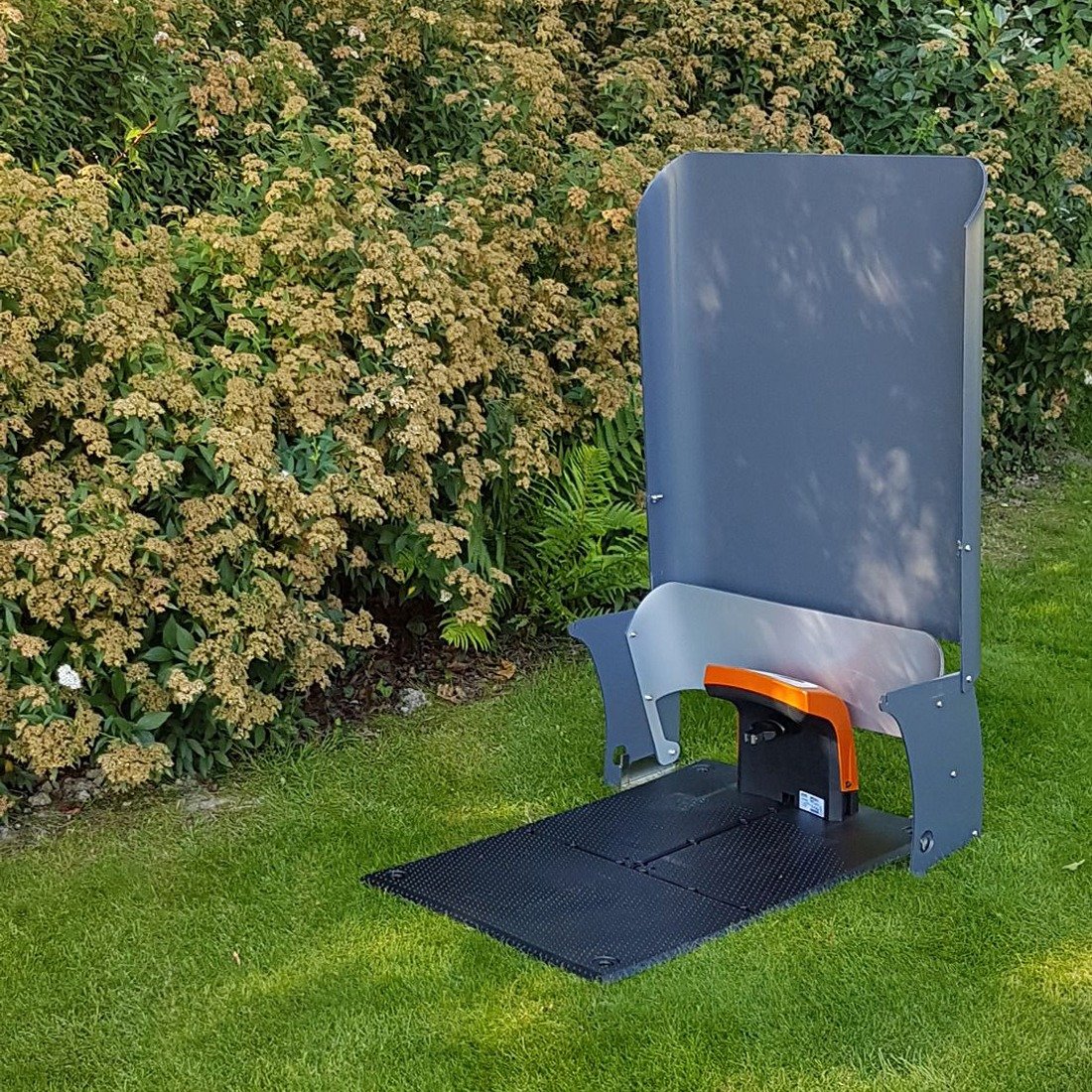 Elegante robotmaaier garage, gemaakt van degelijk en duurzaam kunststof met alumium afwerking.
